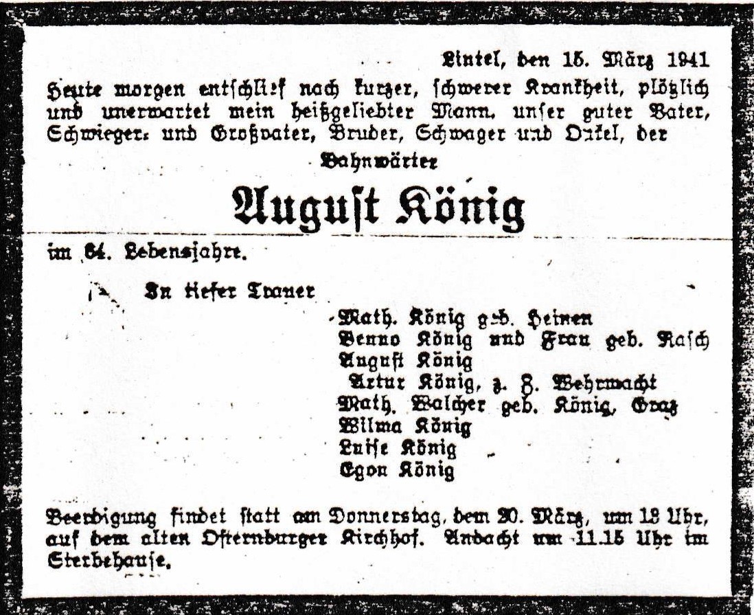 August Friedrich König – Traueranzeige