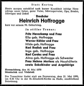 Heinrich Hoffrogge – Traueranzeige